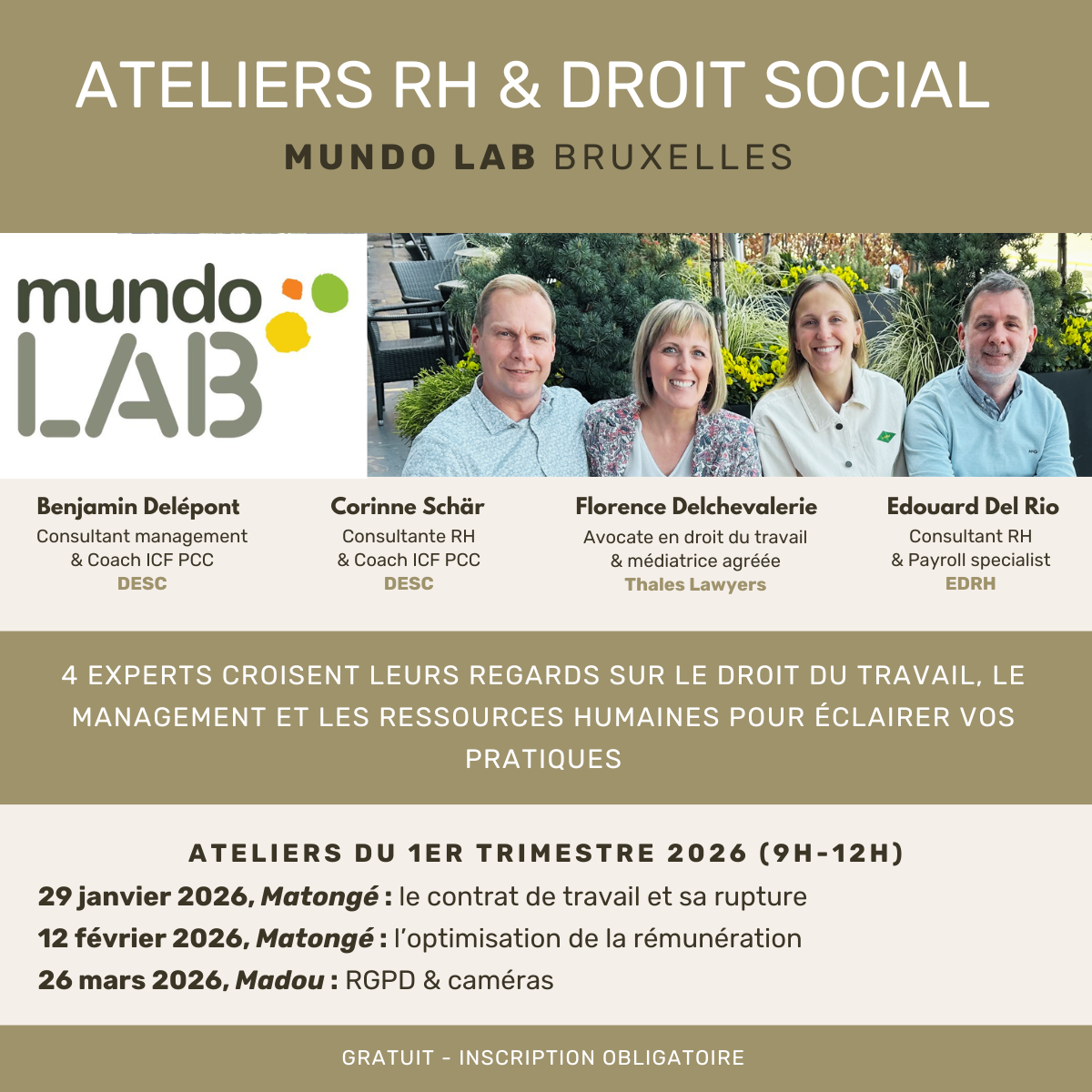 Vu l’engouement pour les premiers ateliers, Me Florence Delchevalerie prolonge le cycle d’ateliers « RH & droit social » chez Mundo Lab avec 3 nouveaux thèmes